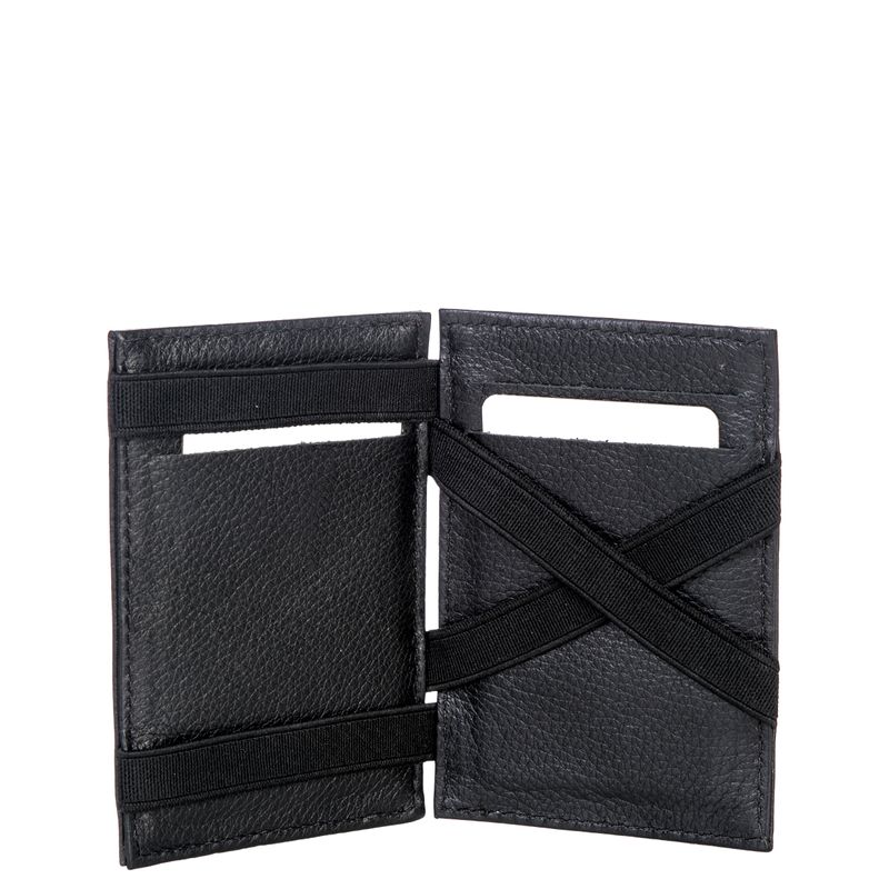 Pequenas, versáteis e funcionais. Os principais atributos desta linha de carteiras da Sestini já mostram as vantagens da coleção feita 100% em couro. Este modelo é a carteira mágica, com abertura em todos os lados e elásticos que prendem notas e cartões em segurança, de forma simples, prática e segura.