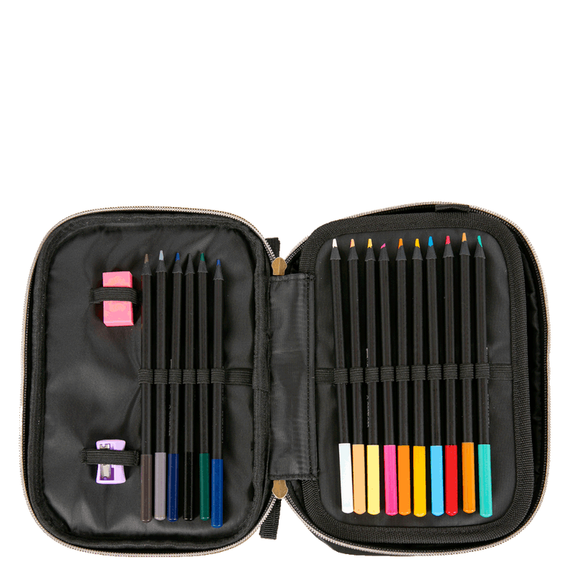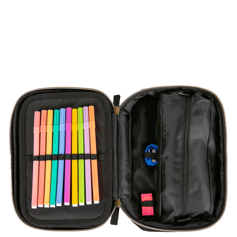 Com um fechamento seguro em zíper, o estojo garante que seus itens fiquem protegidos e bem guardados. Internamente, conta com um bolso com zíper que proporciona um espaço extra para pequenos objetos, além de um organizador que facilita a disposição dos itens, evitando a bagunça.
