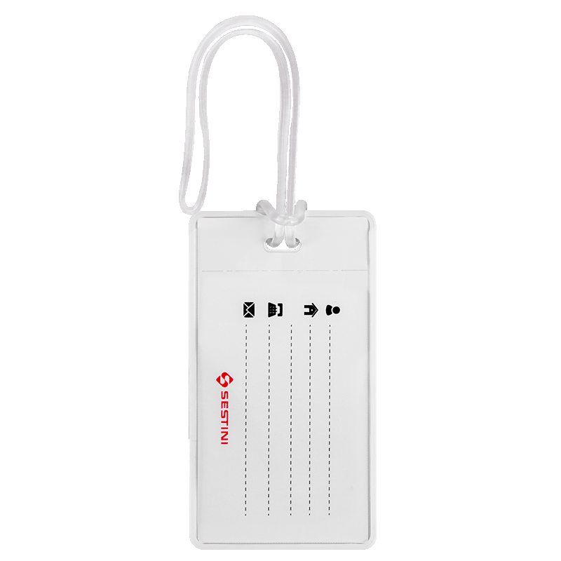 É uma etiqueta com alça em silicone, feita em PVC rígido, super resistente, fácil de limpar e pensada para você viver uma experiência inesquecível, sem preocupação!