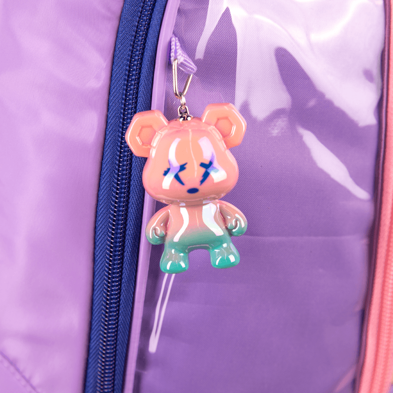 O kit ainda conta com um pingente de logo em metal, que adiciona um toque de sofisticação ao design. Os pontos que prendem facilmente para pingentes permitem personalizar a mochila de acordo com o estilo de cada um. O fechamento com zíper garante segurança e proteção para os pertences.