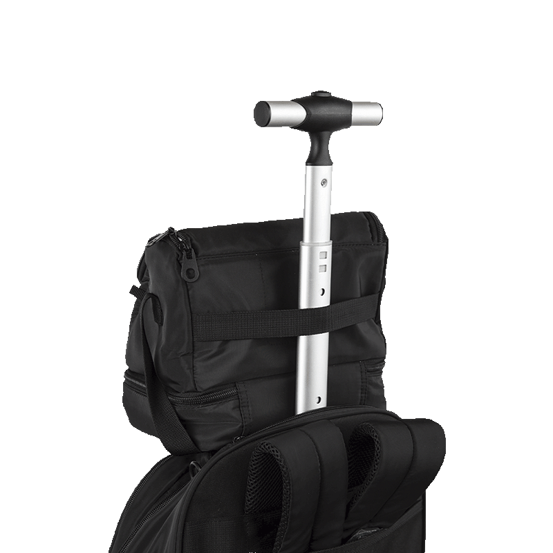 Com 4 rodas duplas que garantem um sistema de giro de 360°, a mobilidade é facilitada, permitindo que você a transporte com facilidade em qualquer direção. O carrinho embutido é uma característica que proporciona conforto e praticidade, especialmente em ambientes escolares ou durante viagens.
