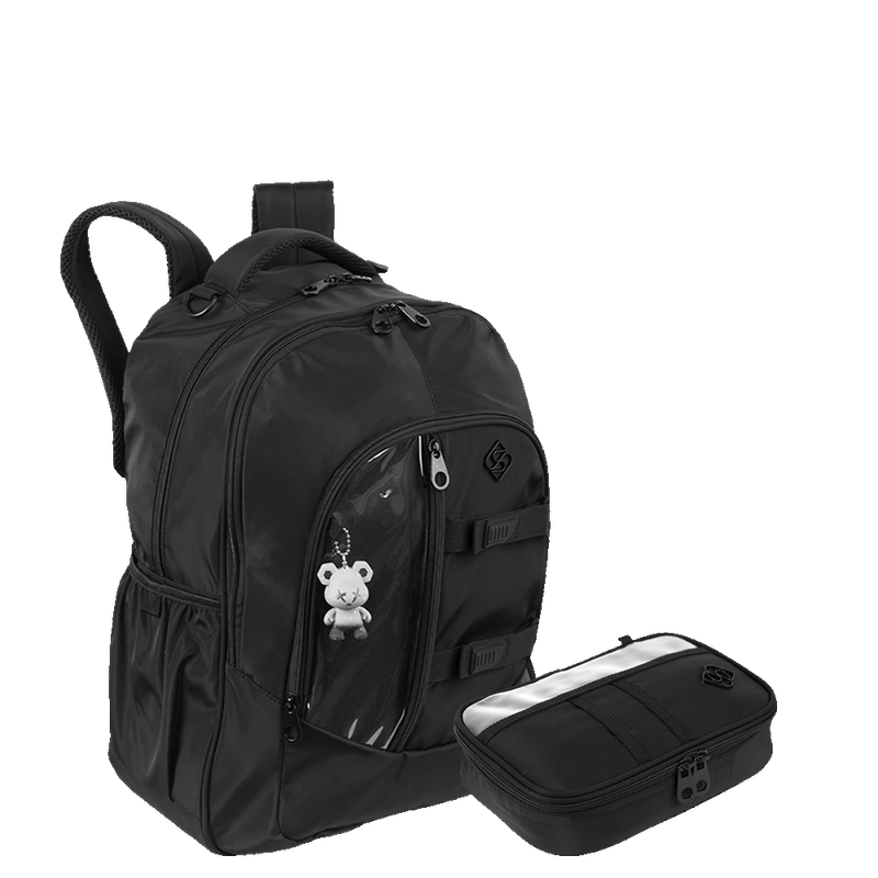 O Kit Mochila Grande com dois compartimentos e estojo box da coleção Sestini Studio é a escolha ideal para quem busca praticidade e estilo. Confeccionada em poliéster, a mochila apresenta um design moderno e funcional, perfeita para o dia a dia.