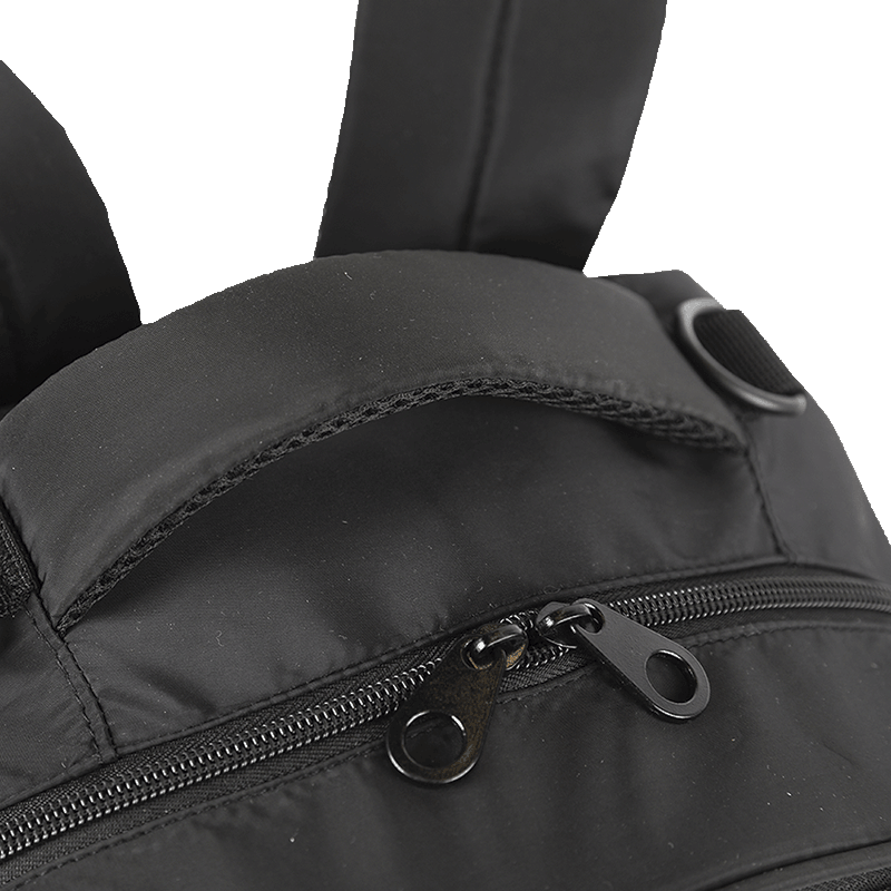 As alças de costas são espumadas e reguláveis, oferecendo um ajuste perfeito e conforto ao carregar. Além disso, a mochila possui bolsos laterais em tela com elástico, que são ótimos para guardar garrafas ou outros itens essenciais. A alça de mão também é espumada, proporcionando uma pegada confortável.
