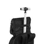 A mochila conta com quatro rodas duplas que proporcionam um sistema de giro de 360°, facilitando o transporte em qualquer direção. O carrinho embutido possui um compartimento acolchoado, ideal para acomodar notebooks de até 15,6 polegadas, garantindo segurança e conforto.