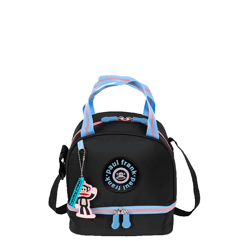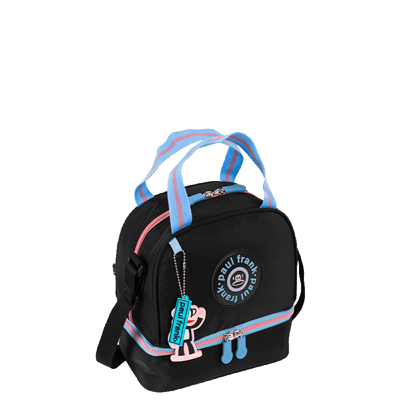 Com dois compartimentos, a lancheira permite organizar os alimentos de forma eficiente, mantendo tudo separado e fresco. A alça transversal é regulável, proporcionando conforto ao transportar, enquanto o fechamento com zíper assegura que os itens permaneçam seguros.