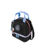 O interior é resistente a líquidos, facilitando a limpeza e evitando preocupações com vazamentos. Além disso, a lancheira conta com alças de mão duplas, que oferecem uma opção adicional de transporte. O puxador personalizado e o logo em baixo relevo adicionam um toque especial ao design.