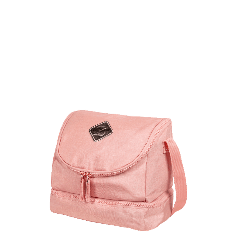 Estilosa, eficiente e ainda mantém a temperatura da sua comida por tempo prolongado! A Lancheira Sestini Lunch 2 em um incrível tom rosa claro com a logo da Sestini personalizada em metálico, para dar um charme a mais e deixá-la com a sua cara, conta com alça transversal regulável para levá-la para todos os lugares junto com você, e a alça carona para encaixar no carrinho da mala ou mochila. Com dois compartimentos bem projetados, o superior oferece espaço amplo para potes, garrafas, frutas e lanches, enquanto o inferior é ideal para objetos e alimentos menores. Ambos os compartimentos contam com um revestimento à prova d'água, garantindo a estabilidade da temperatura por mais tempo.