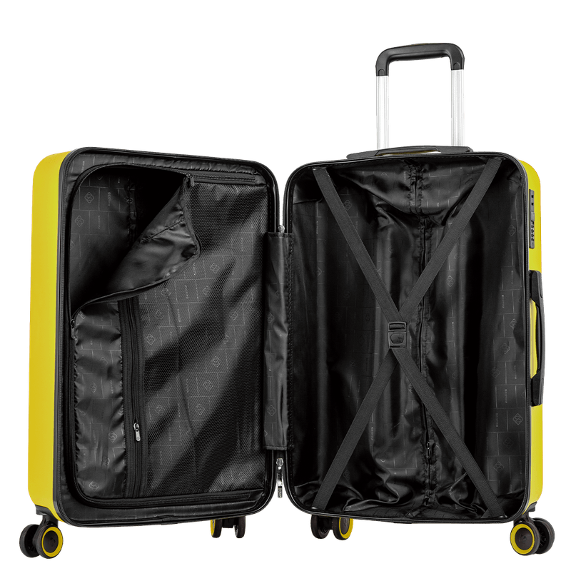 A segurança é uma prioridade, e por isso, a mala conta com um cadeado fixo flat que protege seus pertences. O interior é bem planejado, com uma divisória interna que possui zíper e um elástico para manter suas roupas organizadas e seguras durante a viagem. A abertura central ampla permite acesso fácil ao espaço interno, que é generoso o suficiente para acomodar tudo o que você precisa.