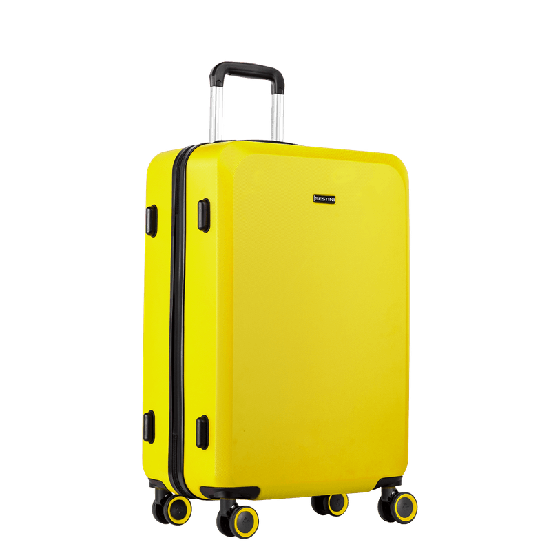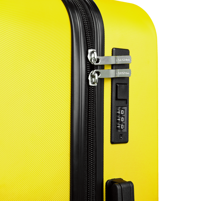 Fabricada em material ABS, essa mala é leve e resistente, perfeita para suportar as exigências das viagens. O sistema de fechamento conta com um cadeado fixo flat, que proporciona segurança adicional, enquanto a abertura central ampla facilita o acesso ao interior.