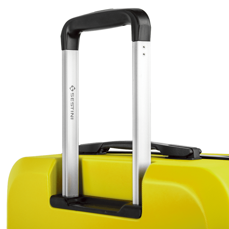 A mala é equipada com um carrinho embutido e quatro rodas duplas que giram 360°, oferecendo uma mobilidade excepcional. A alça de mão emborrachada proporciona conforto ao carregar, tornando a experiência de viagem ainda mais agradável.