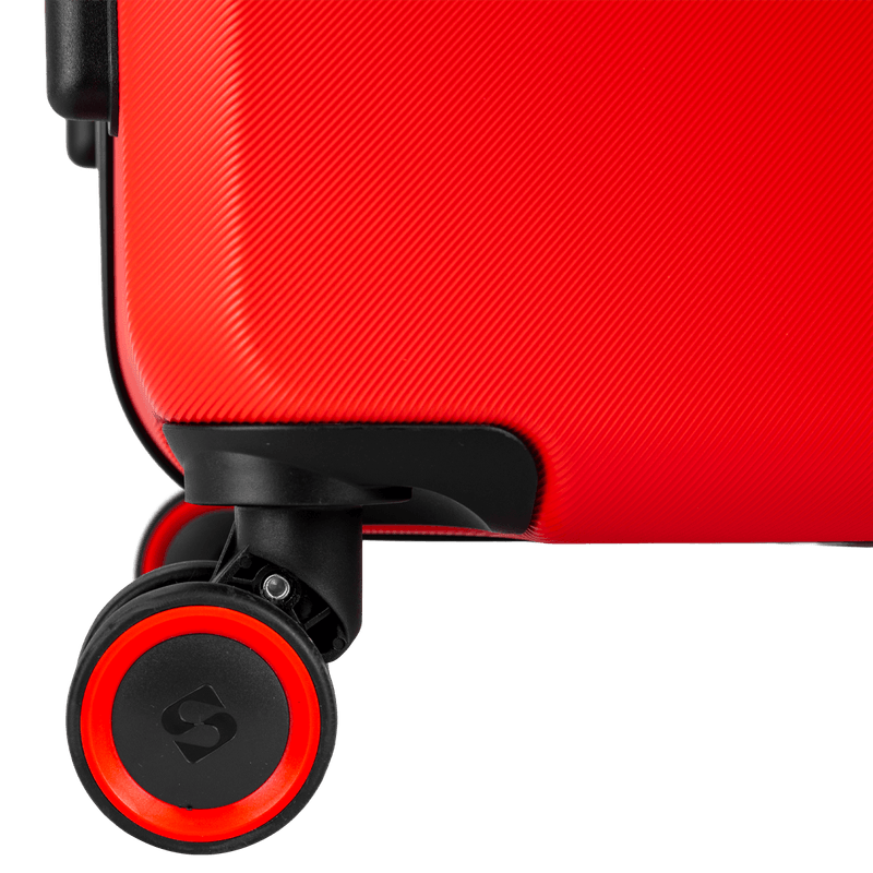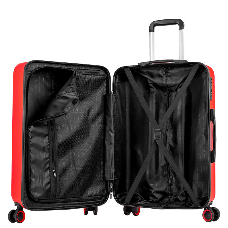 O carrinho embutido e as quatro rodas duplas com sistema de giro 360° tornam o transporte da mala extremamente fácil e ágil, permitindo que você a manobre com um simples movimento. A alça de mão emborrachada oferece conforto ao carregar a mala, tornando a experiência de viagem ainda mais agradável.
