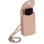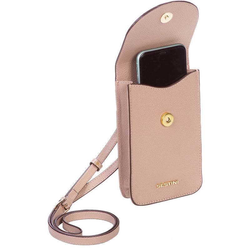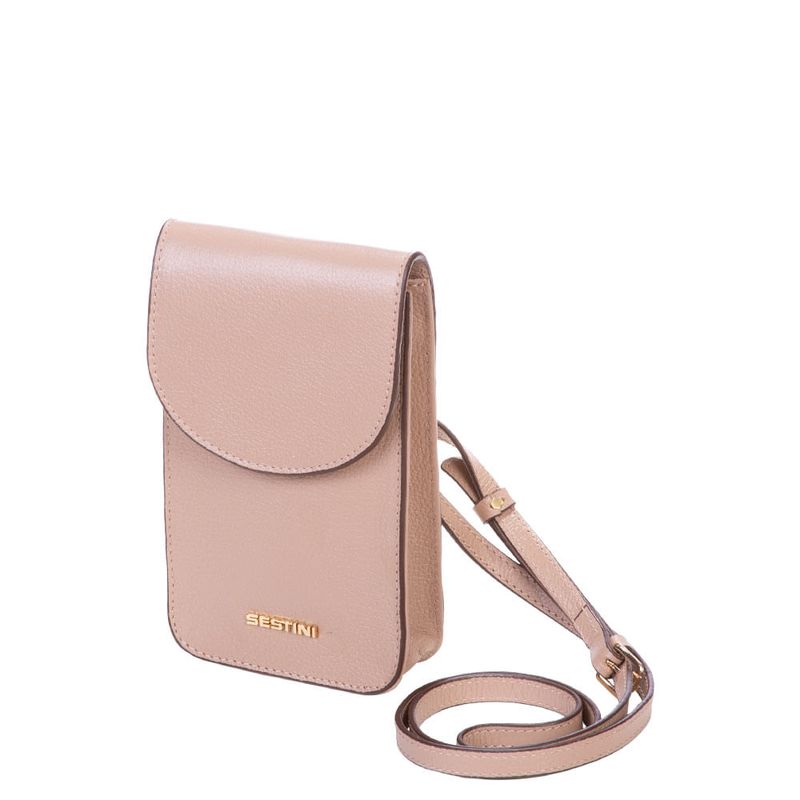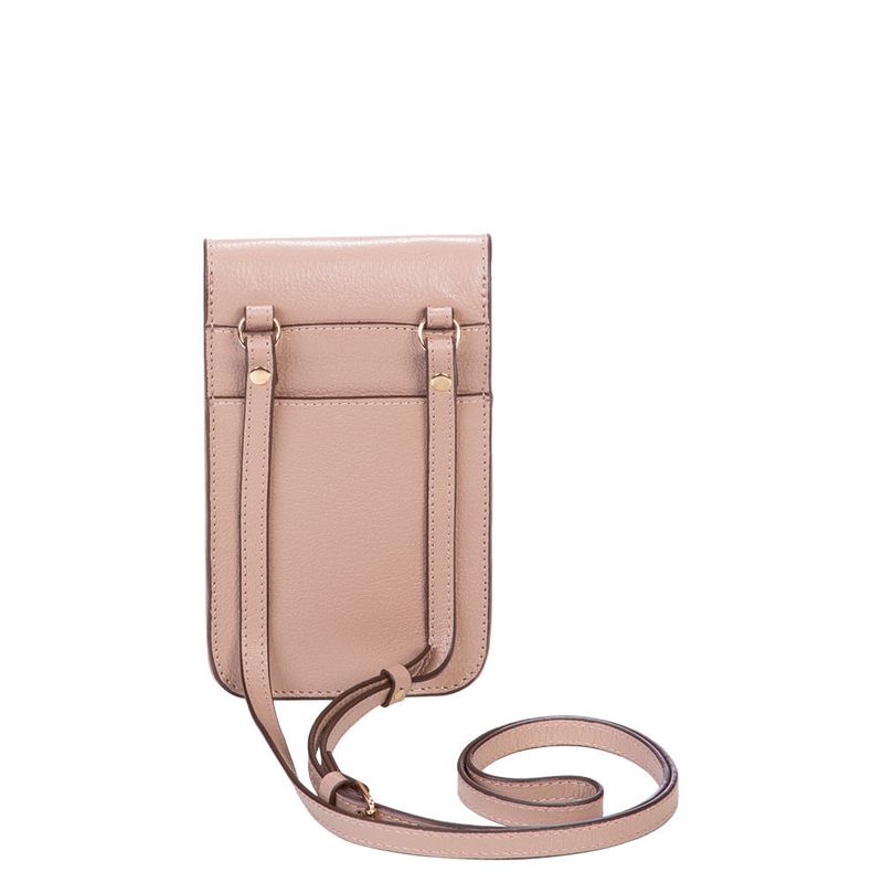O charme da mini bag para celular da linha Verano é o toque ideal para te acompanhar em momentos de lazer. Ela possui um design moderno, feito 100% em couro na cor nude. A alça transversal permite o ajuste ideal para usar no ombro. Um discreto bolso externo nas costas é ótima pedida para guardar cartões, documentos e pequenos itens.
