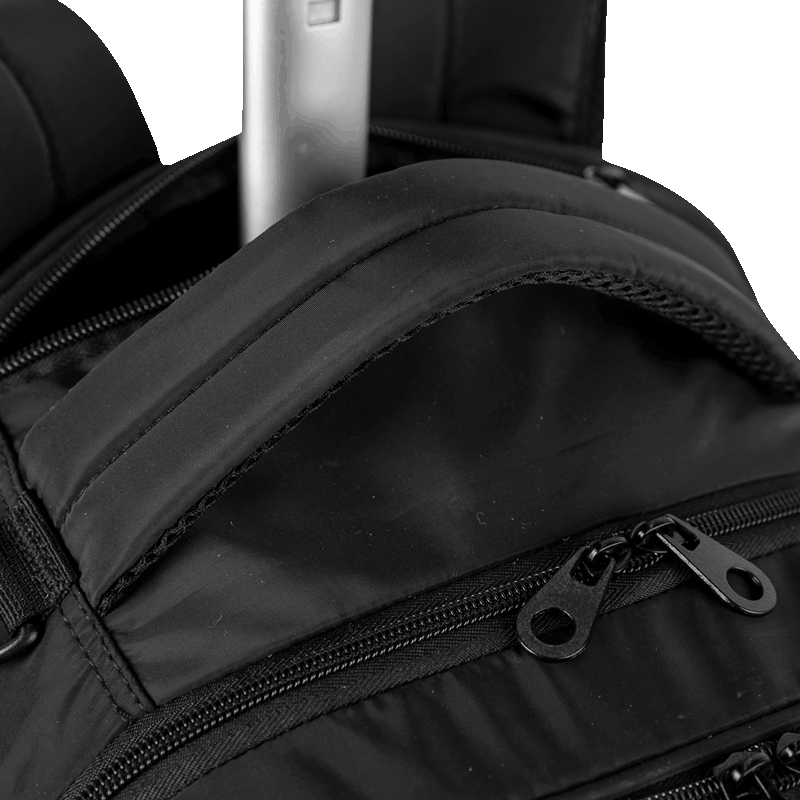 - Alça de mão espumada: Conforto ao carregar a mochila na mão.