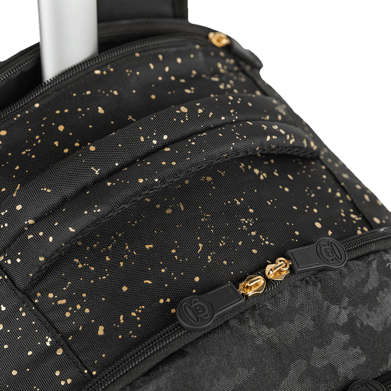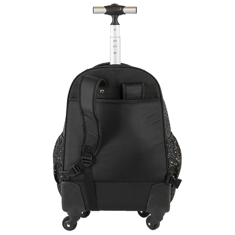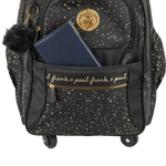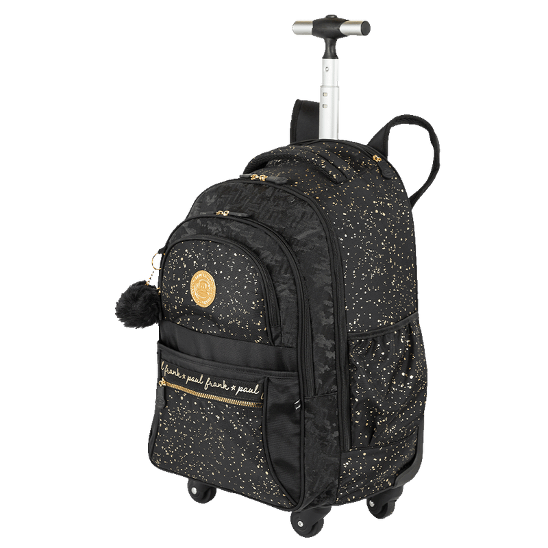 A mochila carrinho 4 rodas Paul Frank Styles - Black N Gold é a escolha ideal para quem busca praticidade e estilo. Parte da coleção Paul Frank Styles, este produto é confeccionado em material de alta qualidade, o náilon, que garante durabilidade e resistência. Com um design inovador, a mochila se transforma em carrinho, oferecendo a versatilidade de um item 2 em 1. As quatro rodas possuem um sistema de giro de 360°, permitindo manobras ágeis e fáceis, seja em ambientes escolares ou em viagens. O interior da mochila é bem planejado, com um amplo espaço que acomoda todos os seus pertences. Um bolso interno com zíper proporciona segurança para itens menores, enquanto os bolsos laterais em tela com elástico são perfeitos para guardar garrafas ou outros objetos de fácil acesso. As alças de costas são espumadas e reguláveis, garantindo conforto durante o transporte. Além disso, o carrinho embutido em alumínio é leve e resistente, e conta com um compartimento acolchoado que acomoda notebooks de até 15,6 polegadas, ideal para quem precisa levar o computador para a escola ou trabalho. Com um visual moderno na combinação de preto e azul, esta mochila é perfeita para quem deseja aliar funcionalidade e estilo no dia a dia.