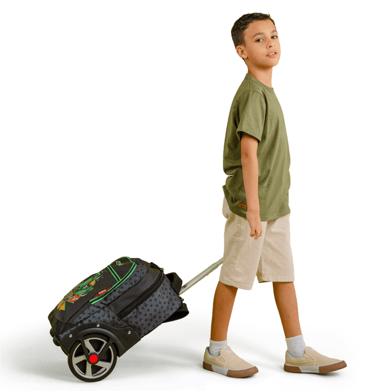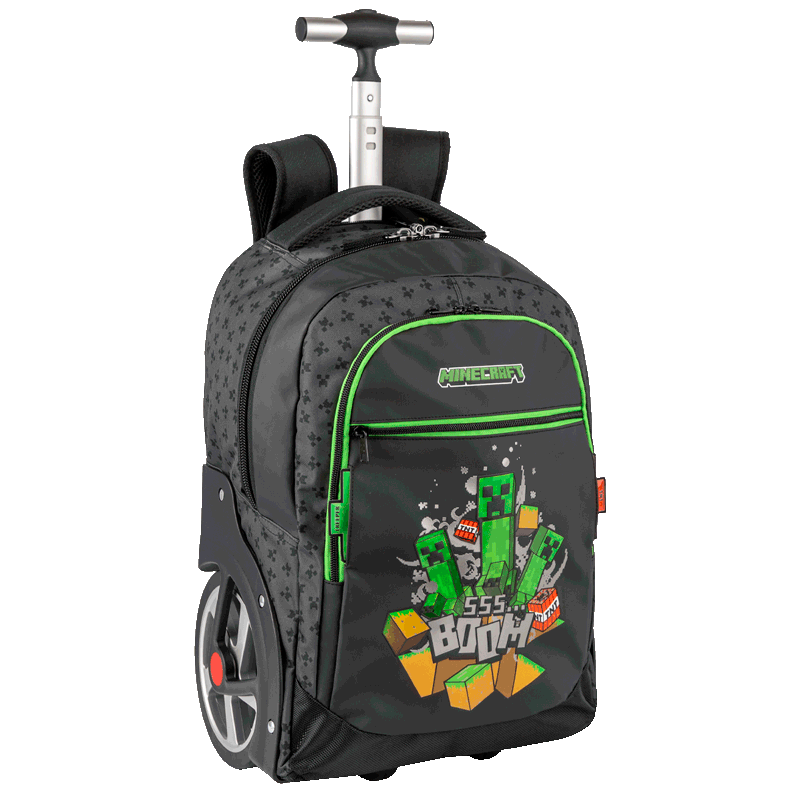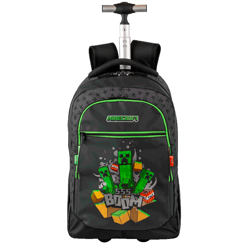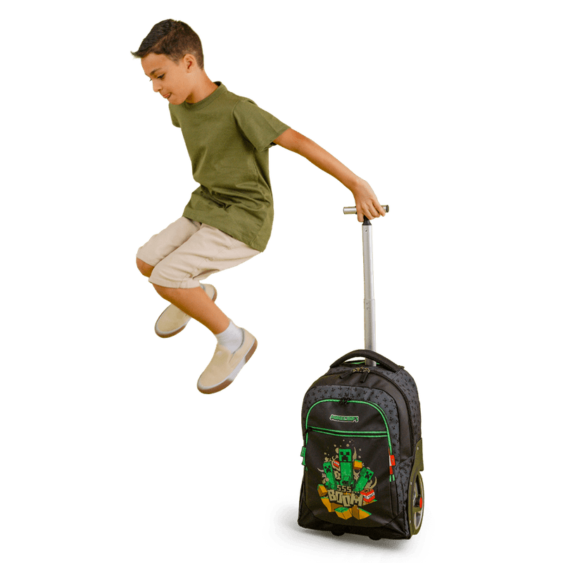 Mantenha tudo organizado e leve com conforto e estilo com a Mochila Carrinho Mega Rodas Minecraft - Icons, uma escolha inovadora e essencial para a volta às aulas que combina praticidade e diversão.