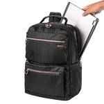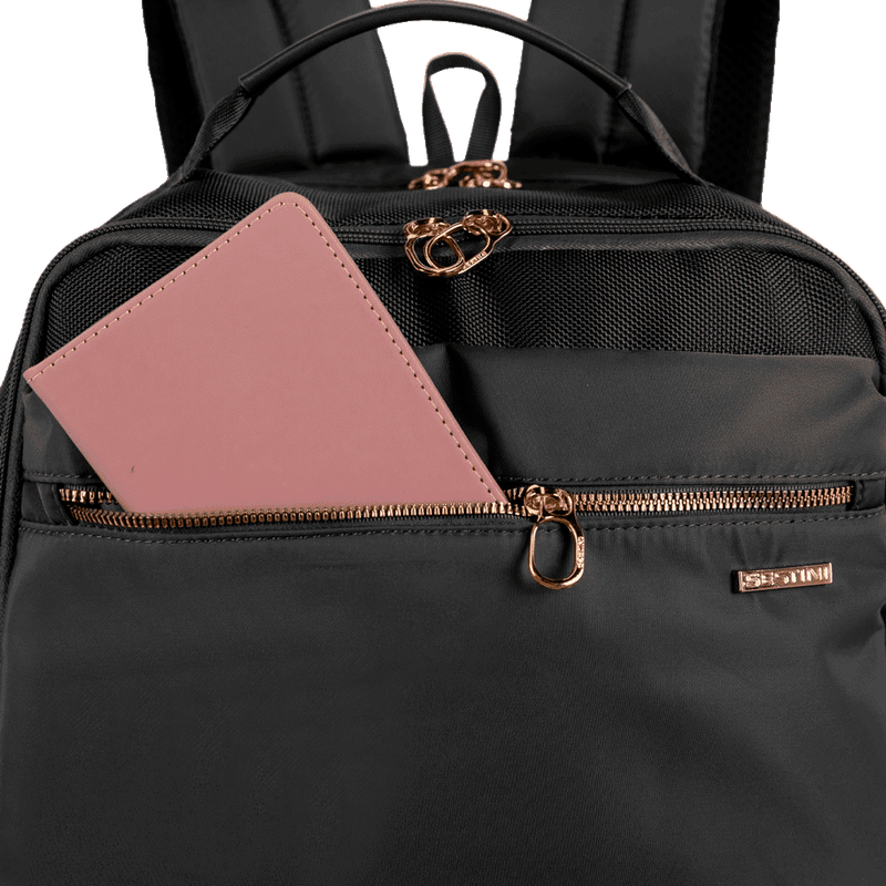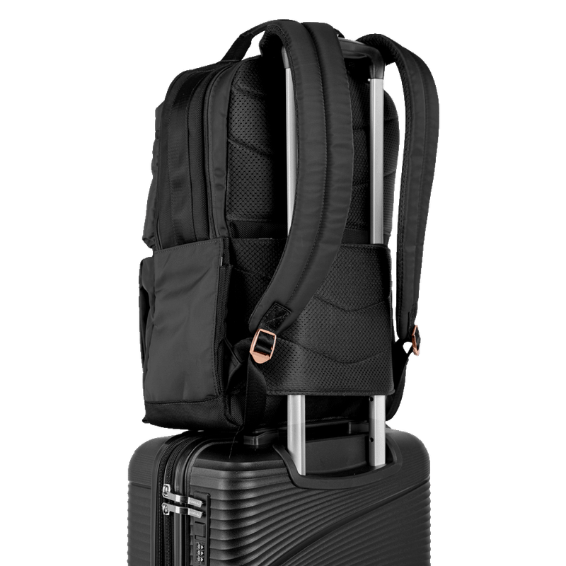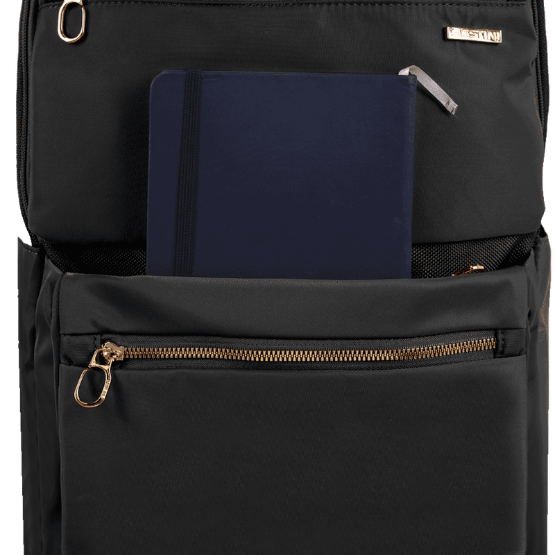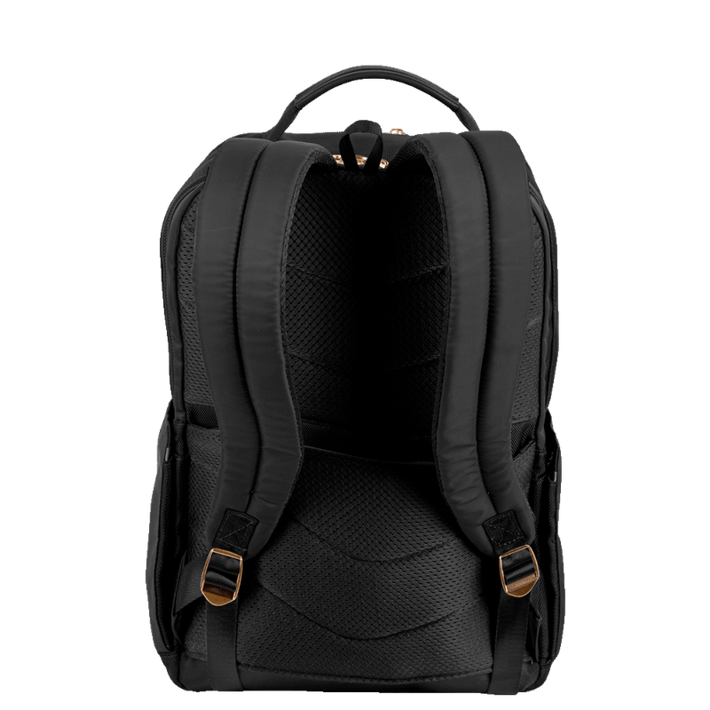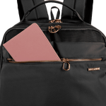 Desperte sua elegância com a Mochila Elegance. Projetada para a mulher contemporânea, seu design grande e slim na clássica cor preta, proporciona conforto com alças e costas acolchoadas, enquanto a alça carona permite o encaixe perfeito da mochila no carrinho da mala durante viagens e passeios. O bolso discreto nas costas é ideal para armazenar itens essenciais que demandam maior segurança ao longo de toda a jornada. Equipada com proteção acolchoada para acomodar um notebook de 15", além de puxadores com trava antifurto, essa mochila se adapta a rotinas movimentadas. Não só isso, mas também apresenta bolsos frontais e os laterais com expansível para organizar pequenos objetos, tornando-a a escolha ideal para mulheres que apreciam estilo aliado à praticidade.