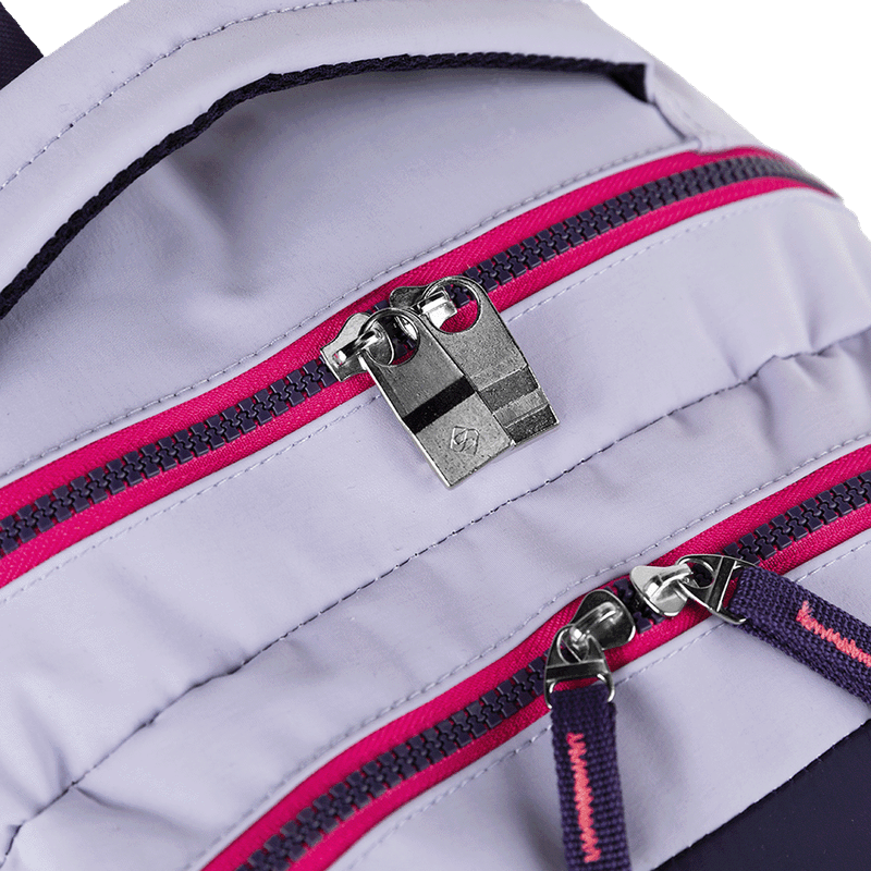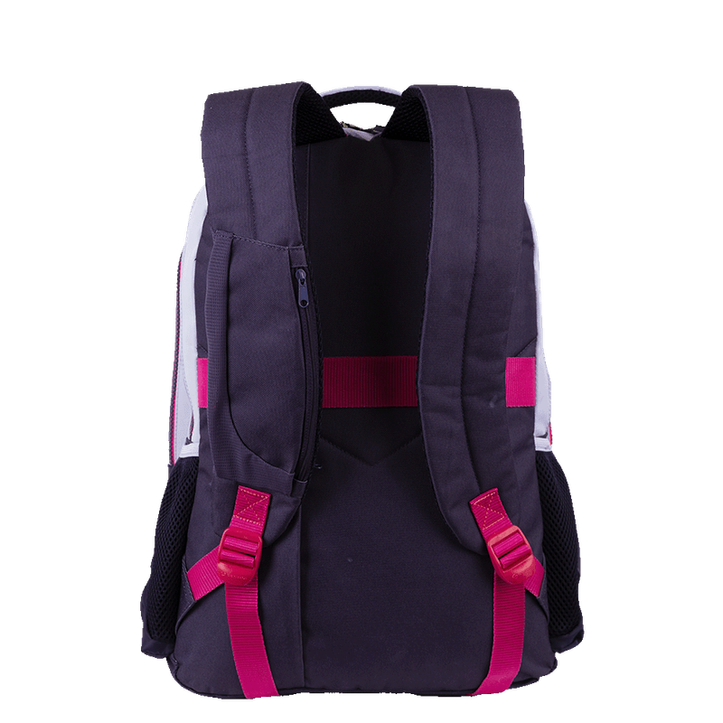 Para maior comodidade, a mochila possui um bolso específico para celular na alça, permitindo acesso rápido ao seu dispositivo. O logo em borracha adiciona um toque de estilo ao design, que combina perfeitamente com a cor vibrante Purple Candy.