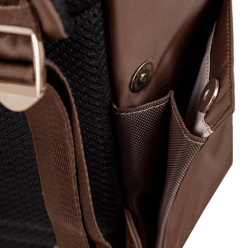 - Bolsos laterais em tela com elástico: armazenamento prático para garrafas e pequenos objetos.
