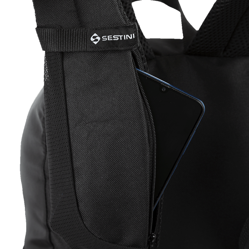Os bolsos laterais com elástico são ótimos para guardar itens menores, como garrafas de água ou guarda-chuvas, enquanto o fechamento com zíper proporciona segurança. No interior, um organizador mantém tudo em ordem, com um bolso específico para celular que conta com um organizador de fone de ouvido, facilitando o acesso aos seus dispositivos.